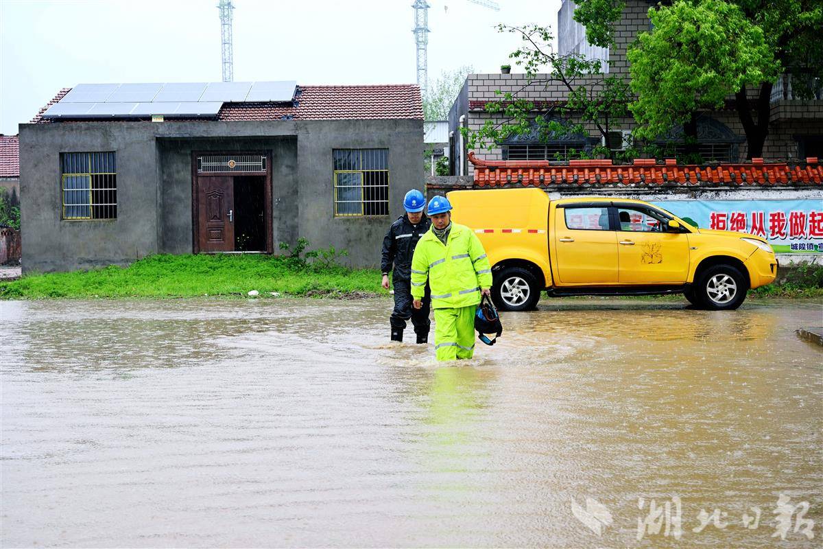 4月9日,孝感汉川市遭遇暴雨、大风天气,最大累计降雨量超150毫米。强对流天气致使部分乡镇树木被刮断,当地公安、消防、电力等部门迅速开展紧急救援。临近中午,雨势逐步减弱。国网汉川市供电公司立即组织党员突击队,赶赴城隍镇对10千伏隍62城镇二回线开展抢修作业,全力保障市民用上安全电、放心电。(视界网 余健兵 摄)