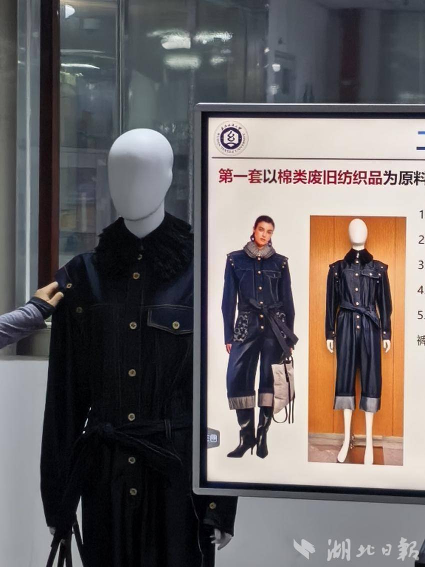 全球首件循环再生新衣亮相武汉纺织大学。(湖北日报全媒记者包东喜摄)