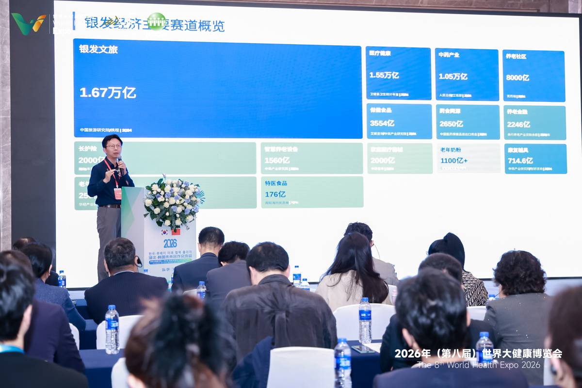 产业论坛上,中韩专家学者围绕产业前沿与合作机遇展开深入交流。银发财经创始人、首席经济学家周超解读我国银发经济需求结构与产业布局,分析老龄化背景下的产业新机遇。韩国保健产业振兴院中国代表处首席代表白承洙介绍韩国生物健康产业发展情况,并指出中韩可在银发经济、医疗美容等领域深化合作。