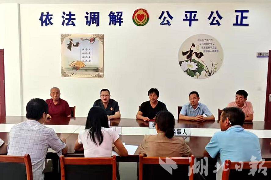 没有高高在上的法台,几张木桌,几把椅子,旁听的村民围成一圈。张家政不急不躁,从法律规定到诉讼成本,掰开揉碎地讲。调解员、村干部、“五老”乡贤等则从乡土人情、为人处世的道理入手,一点点解开当事人的心结。