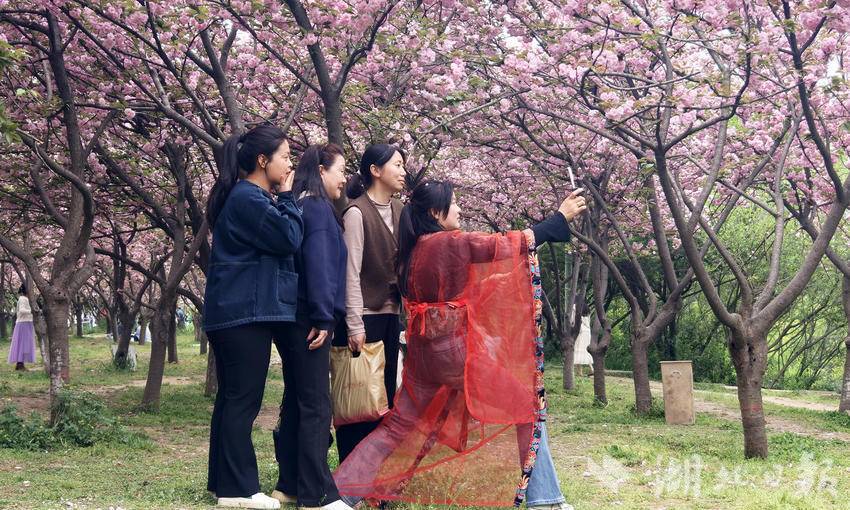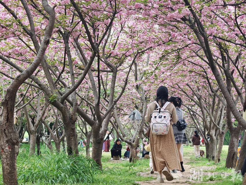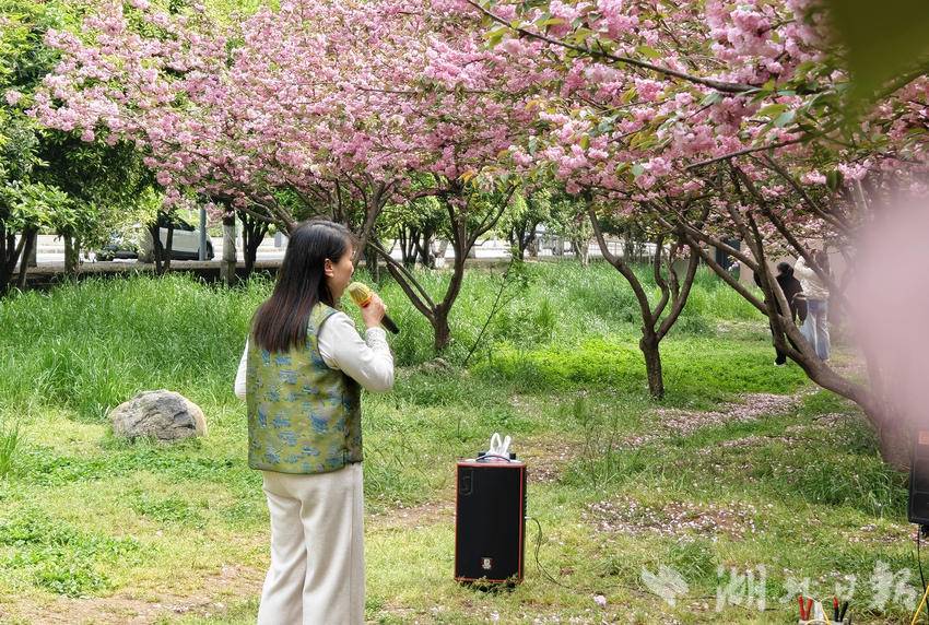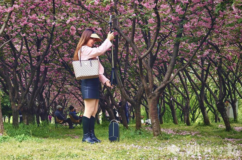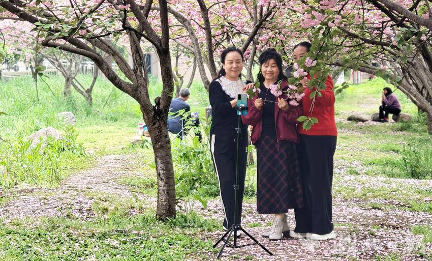 4月9日午后,云开雾散,天气初晴。市民们扶老携幼、呼朋引伴而来,声乐爱好者、网络达人也纷至沓来——有人悠然漫步,在花下拍照流连;有人即兴而歌,在林中一展清音;更有人架起设备,将满园烂漫通过直播传向远方……人们以各自喜爱的方式,沉浸于这份独属春日的限定美好。