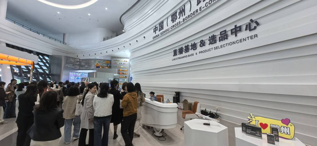 在中国(鄂州)跨境电商产业园,大家认真听取园区“一基地六中心”建设运营、政策支持、产业链布局等情况介绍,现场观摩选品、直播、仓储、跨境贸易等全流程场景,深入了解园区“一日达全国,隔夜达全球”的快货物流圈优势,直观感受湖北跨境电商发展的强劲势头。