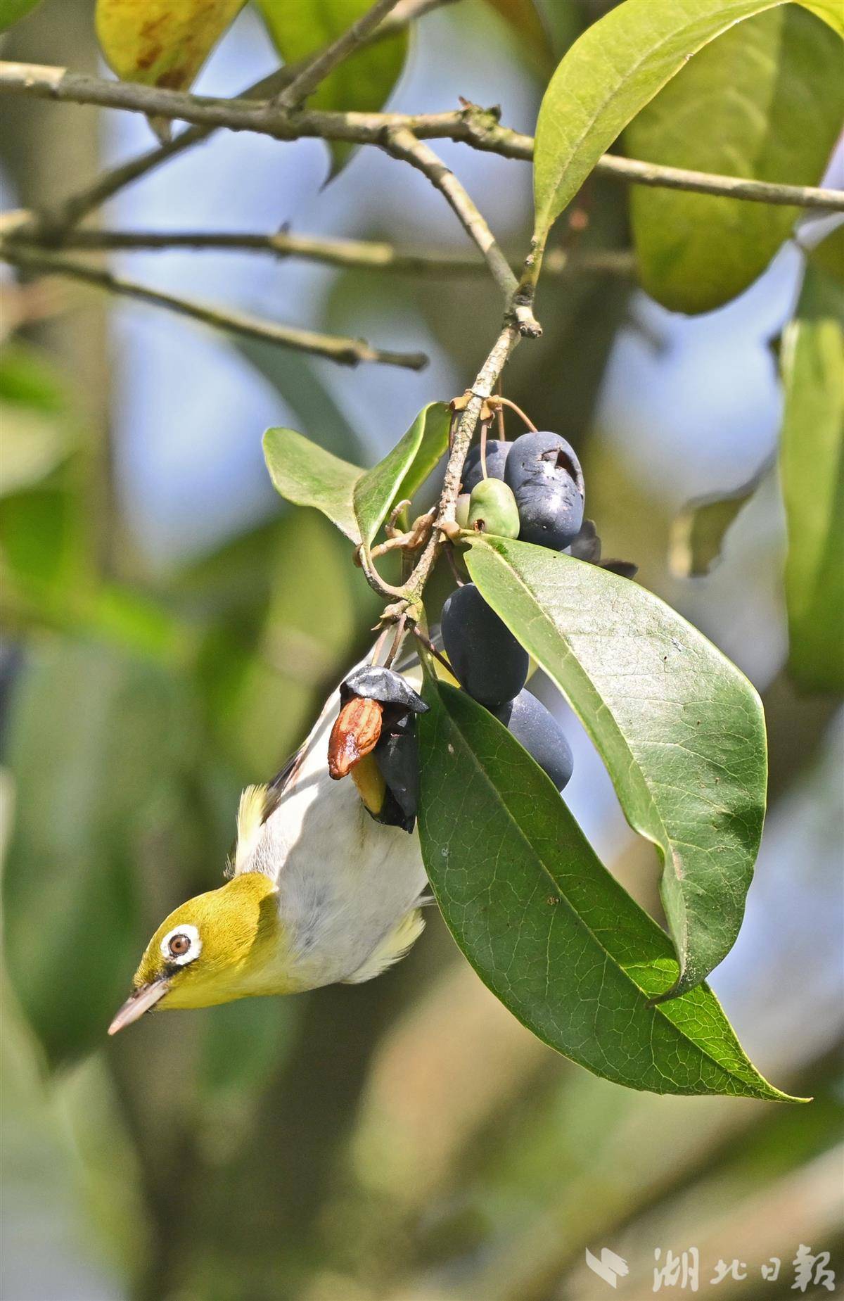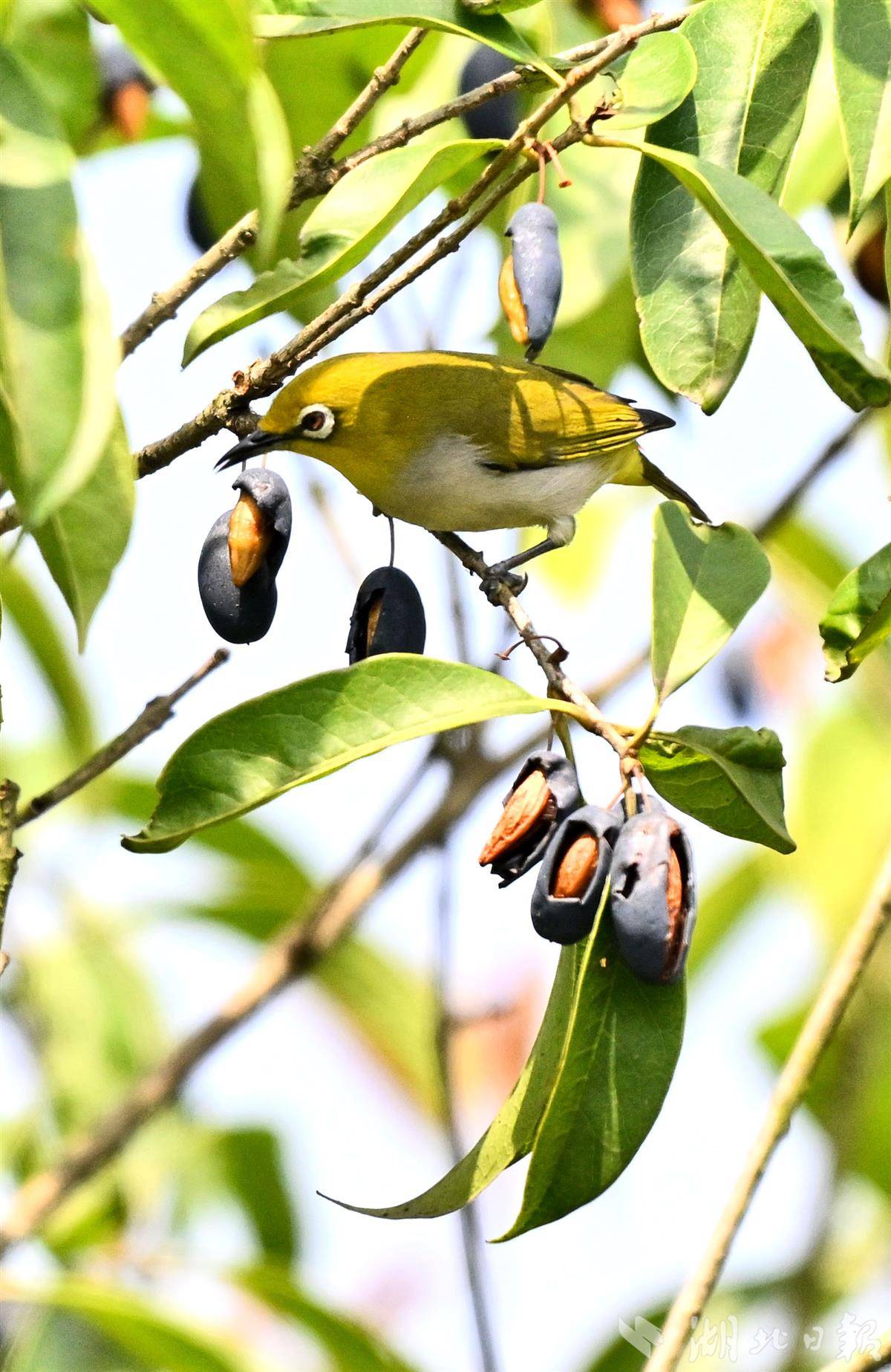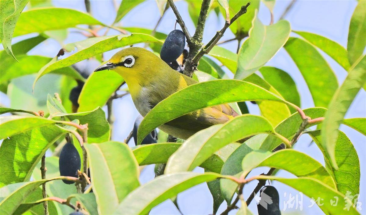 作为杂食性鸟类,暗绿绣眼鸟食性随季节更替,春季以植物浆果、花蜜为主,夏季捕食各类昆虫,觅食过程中还能帮助植物传播种子,是生态系统中重要的 “播种者”。三峡植物园植被繁茂、生态环境优良,为宜昌城区重要生物多样性保护基地,为野生鸟类提供了优质栖息觅食环境。三峡植物园作为省内热门观鸟打卡地,吸引众多观鸟爱好者前来记录。(湖北日报全媒记者 刘曙松 摄)