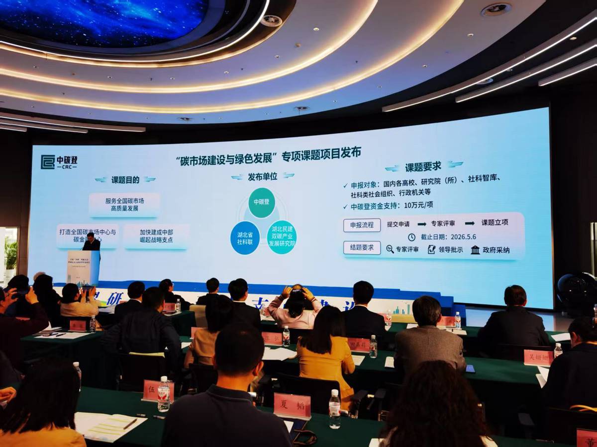湖北日报讯(记者张双双、通讯员陈弘)4月10日,首届“双碳”智研大会暨湖北支点建设智库恳谈会在汉举行。会上,湖北省社科联、中碳登和湖北民建双碳产业发展研究院,共同发布首批“碳市场建设与绿色发展”专项课题,面向全国广发“英雄帖”,以真金白银的支持诚邀各界智研力量,进一步推动“双碳”领域理论研究与实践探索深度融合。