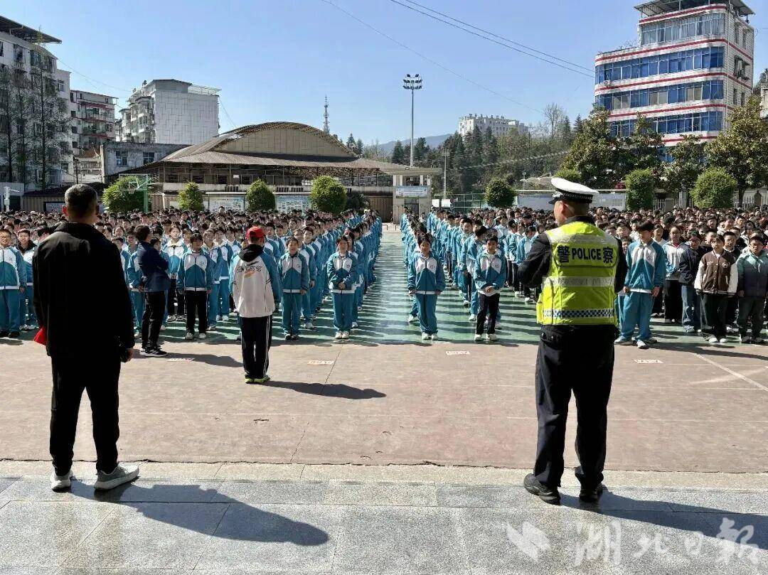 竹溪交警走进竹溪实验中学,为2000余名师生开展春季交通安全宣传。