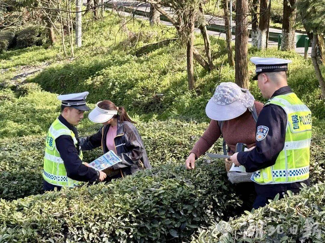 竹溪交警走进龙王垭、黄花沟茶园采摘基地,开展交通安全宣传。