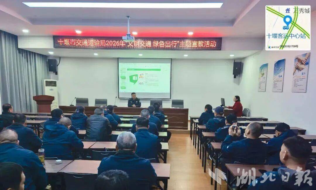 十堰交警三大队联合市交通运输局深入亨运集团旅游运输有限公司,开展2026年“文明交通 绿色出行”主题宣教活动。