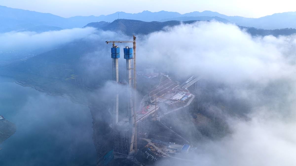十巫南高速新洲特大桥主塔封顶(受访者供图)