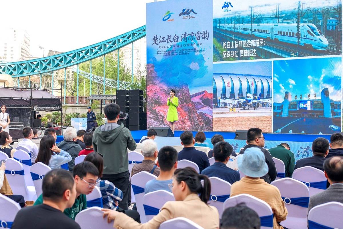 为了吸引湖北游客,推介会现场重磅发布了长白山优惠政策:今年4月,长白山北、西景区面向全体海内外游客免门票,周边系列景区也推出门票优惠、特价民宿餐饮活动。现场还展示了隋氏铁艺、乌拉草编、郁氏根雕、鱼皮制作技艺等非遗技艺,分享了长白山、白山、延边州的特色文创。