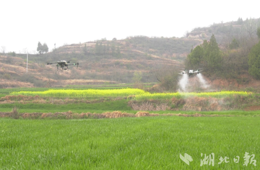 湖北日报讯(通讯员段白龙、云媒心)日前,趁着天气利好,十堰市郧阳区安阳镇李营村种植大户王波将两台植保无人机运至麦田间,轻点屏幕,植保无人机按照设定流量,将农药精准喷洒到小麦上。王波说,现在有了先进设备,田间管护特别方便。以前用人工进行打药施肥,要四五个人,一个星期才能完成,现在有了农用植保无人机,只需要半天时间,就能完成打药施肥,效率大大提高了。
