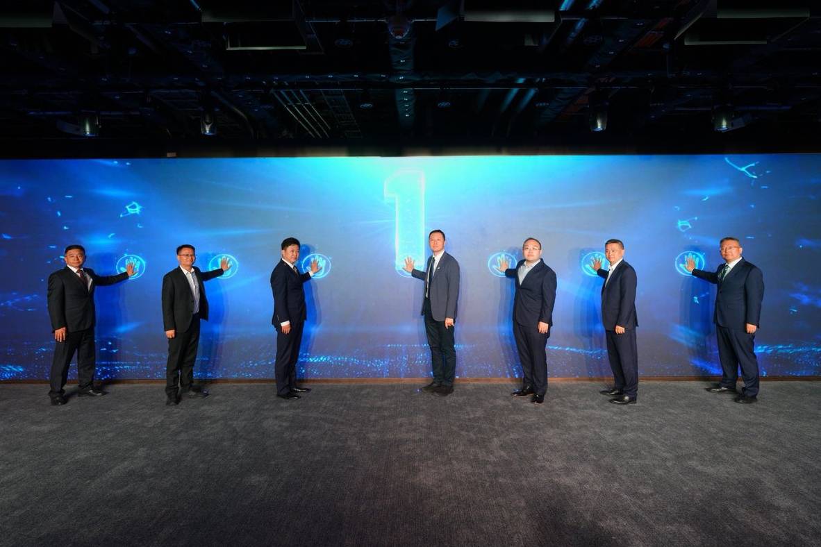 发布会进入启动仪式环节,各位领导与嘉宾共同登台,触发启动装置,大屏同步呈现智能启动与华为鸿蒙智家智能客舱运行画面,全场共同见证这一历史性时刻。仪式现场,领导嘉宾合影留念,定格荣耀瞬间。