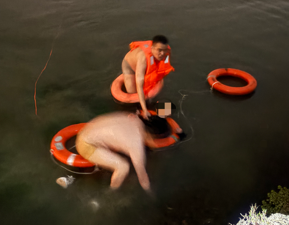 危急时刻,樊城区中原派出所民警赶至现场。他们兵分两路,一组拿起救生圈和救生衣冲向河边,另一组对围观群众进行劝离。