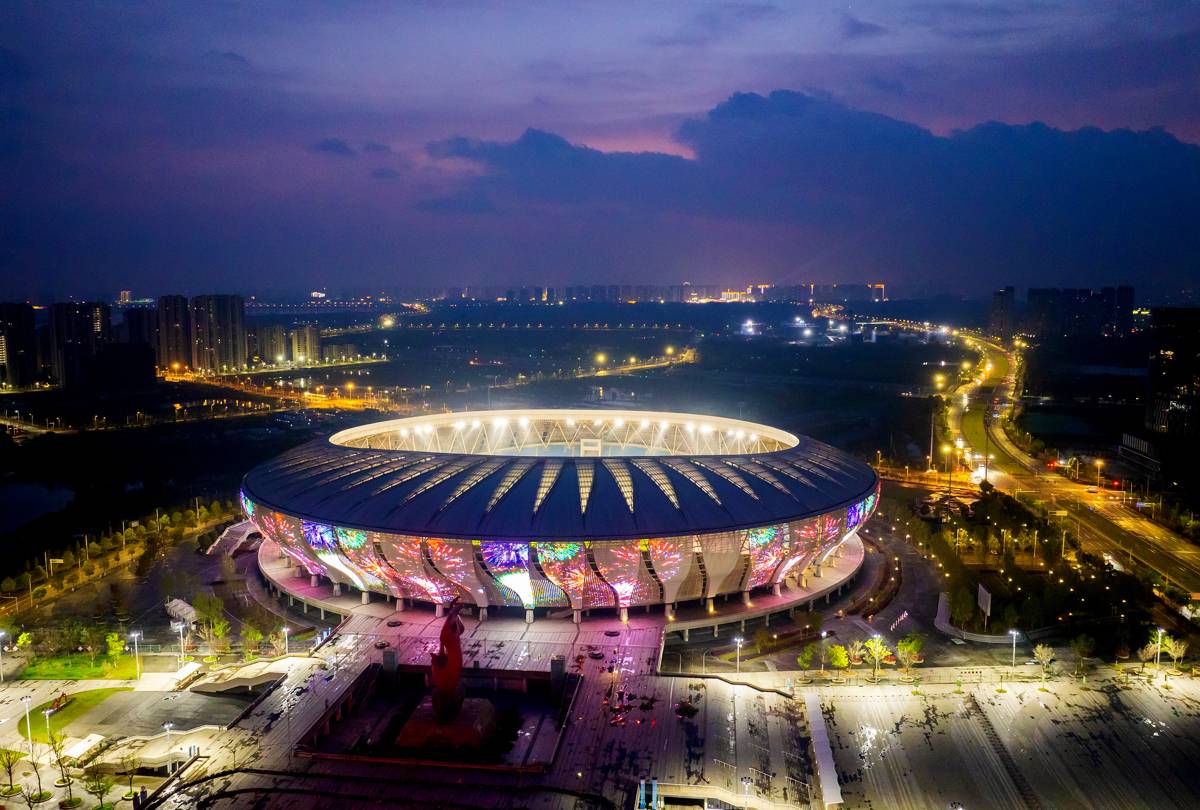 黄石市奥体中心体育场静待“楚超”正式开启!(通讯员 石勇 姜博 摄)