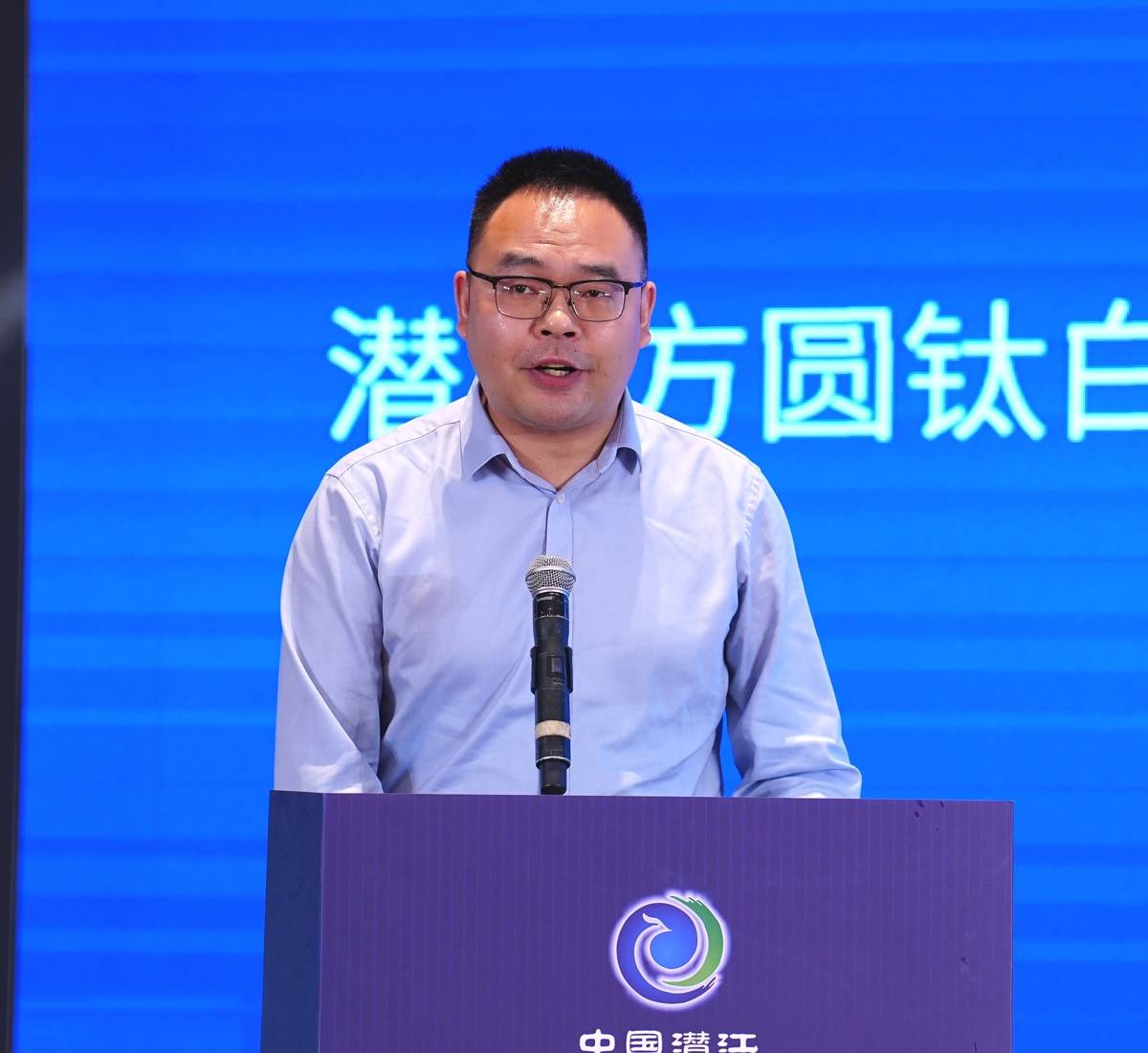 活动的主持人是王磊博士,鼎龙汇盛新材料有限公司总经理,一位在潜江扎根的高端人才。(湖北日报通讯员 杨靖 摄)