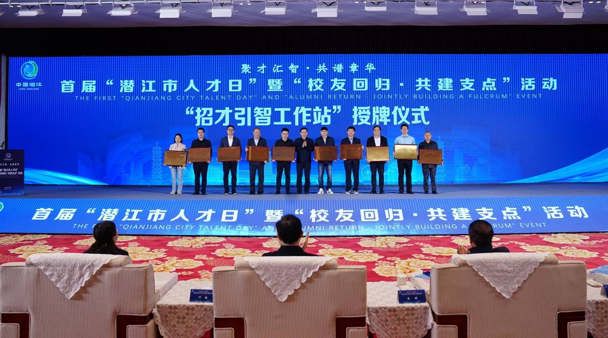 潜江市为“招才引智工作站”授牌。(湖北日报通讯员 杨靖 摄)