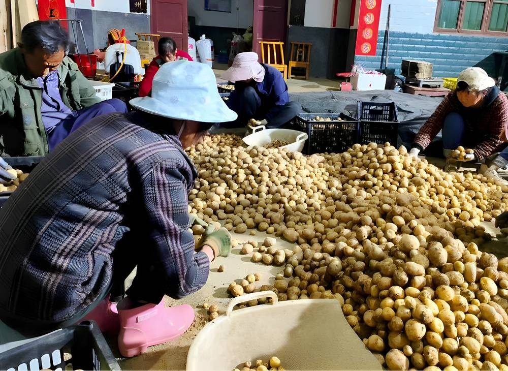当地推行“深沟高垄、净作密植、地膜覆盖”标准化栽培,垄宽80厘米、高25厘米,冬季保温保墒,减少病虫害发生。因薯皮娇嫩,采收全程采用人工采挖,带动30余名村民就近务工,日薪100元并提供三餐。