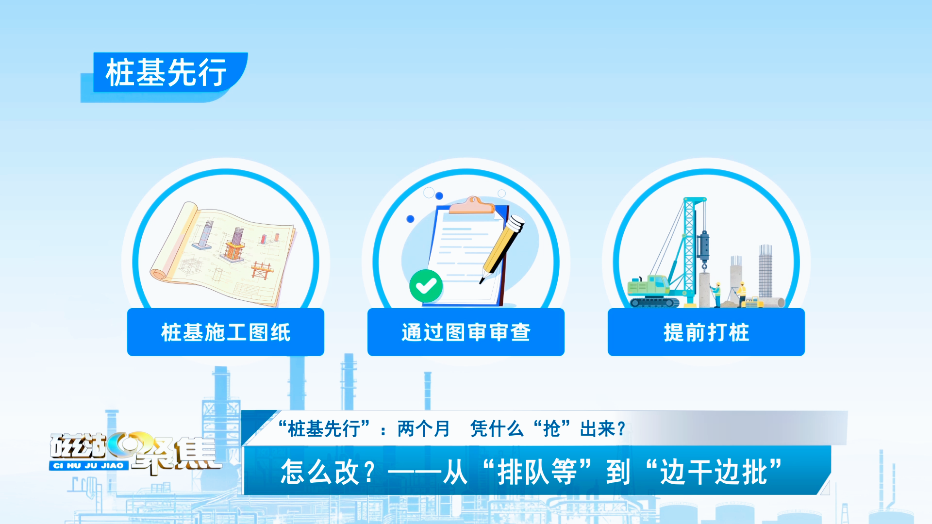 如今,在开发区·铁山区,“桩基先行”已不再是单点突破,而是从试点探索走向全域普惠的系统改革,成为该区优化营商环境的“组合拳”之一。锚定“千亿园区”目标,深化工程建设项目审批和验收制度改革,开发区·铁山区同步配套并联审批、三级响应销号制等系列举措,全链条保障项目建设要素需求,让“桩基先行”成为新签约工业项目的“标配服务”。