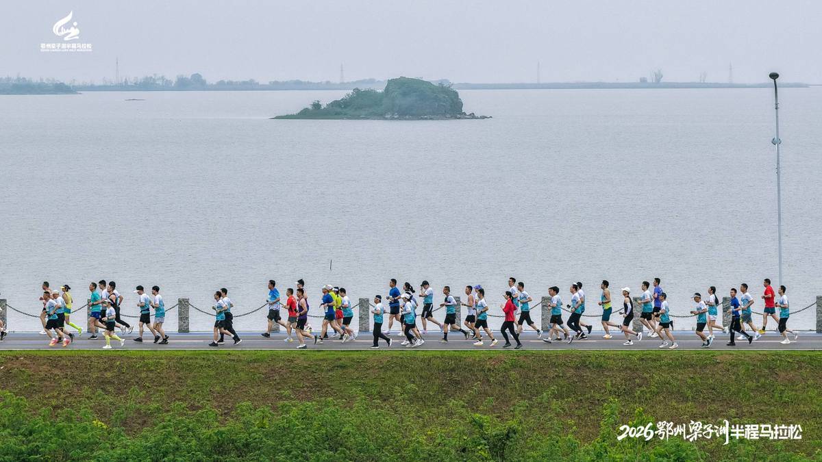 4月12日8时,发令枪响,2026鄂州梁子湖半程马拉松在梧桐湖码头鸣枪起跑。4000名跑者沿环湖绿道破风前行,在碧波万顷的梁子湖畔展开了一场速度与耐力、生态与人文交织的竞速盛宴。