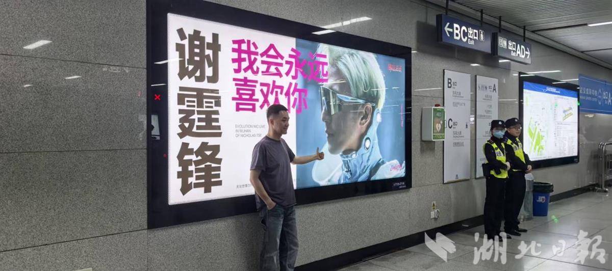 4月11日,歌迷在地铁站打卡。(湖北日报全媒记者 甄子萱 摄)