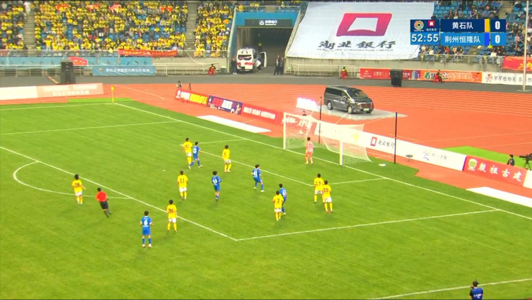 下半场比赛进行到52分钟,黄石队左路配合失误被抢断,荆州队62号江尔晗禁区右侧小角度果断起脚打门,皮球直挂球门左侧死角!客场作战的荆州队1:0领先!
