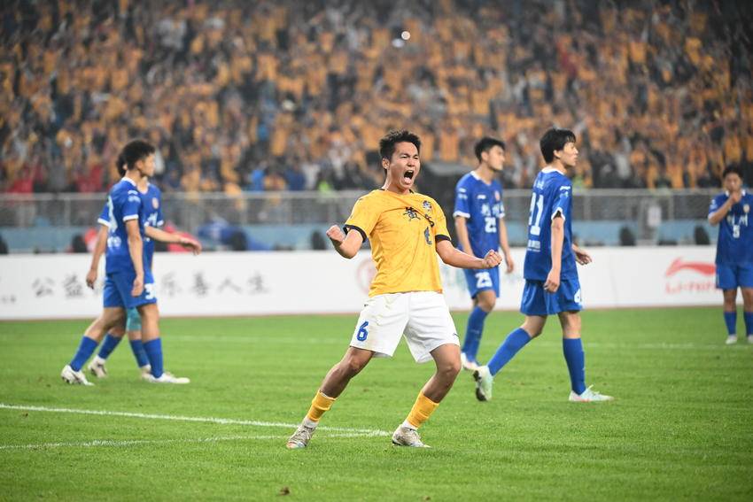 第77分钟,黄石队由11号童威外围远射破门,将比分扳成1比1。