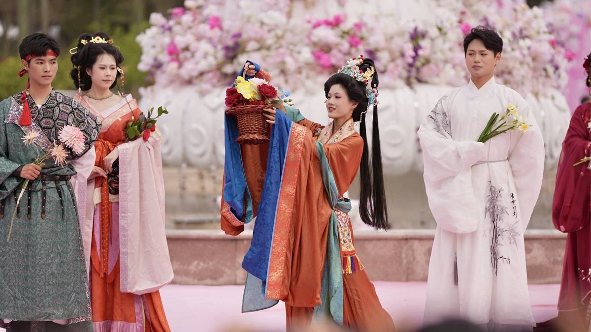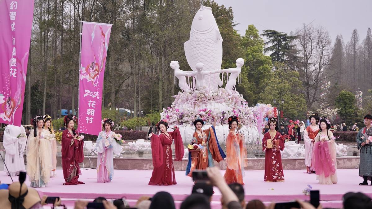 潜江市第七届中华花朝民俗汇热闹开场。(湖北日报通讯员 艾帅 摄)