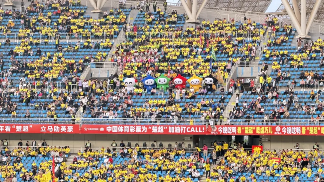 赛事现场,中国体育彩票吉祥物乐小星与“楚超联赛”吉祥物楚小焱惊喜亮相,上演了一场萌趣横生的互动。吉祥物们身着鲜明服饰,在广场上活力舞蹈,并与现场观众展开趣味游戏,引得观众阵阵欢笑。