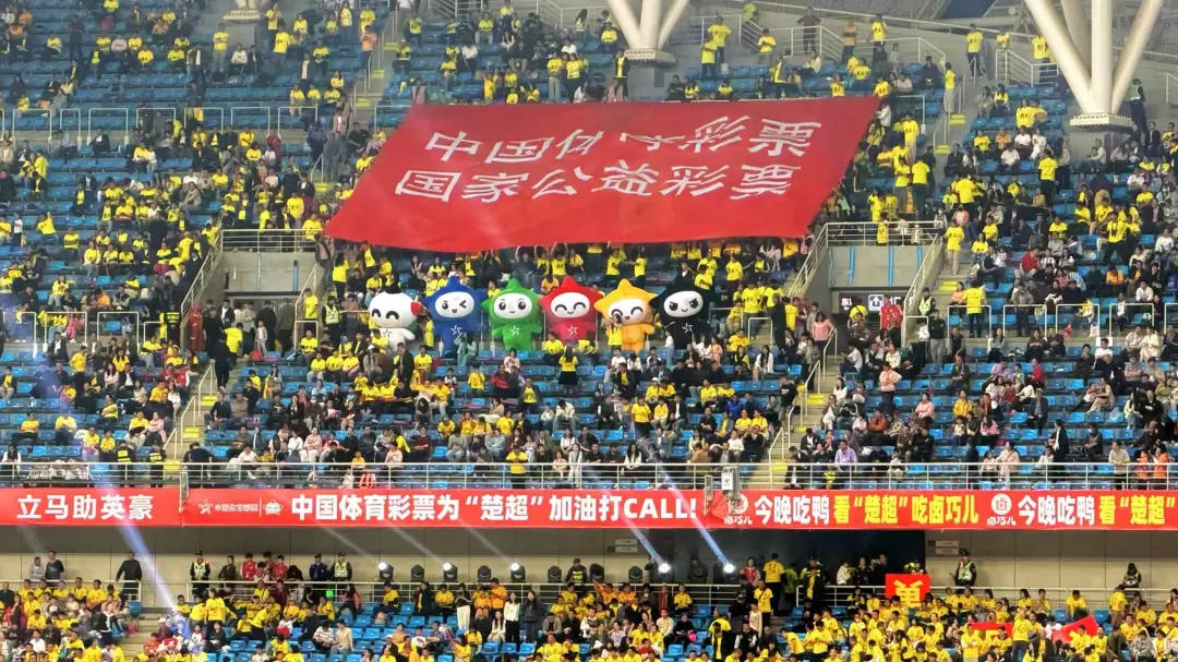 比赛现场,湖北体彩精心打造的近千人的专属方阵成为赛场内的亮眼风景线。印有体彩LOGO的定制球服整齐划一,一面巨型红色TIFO旗帜迎风飘扬,摇旗与加油棒交替挥舞,方阵成员齐声呐喊、全力助威,既展现了体彩人的精神风貌,也让体彩品牌形象深入人心。