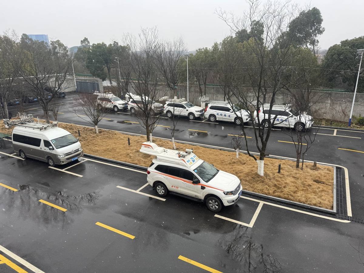 路和路达智能交通科技有限公司内,十余辆不同功能的公路巡查检测车整齐停放。(受访企业供图)