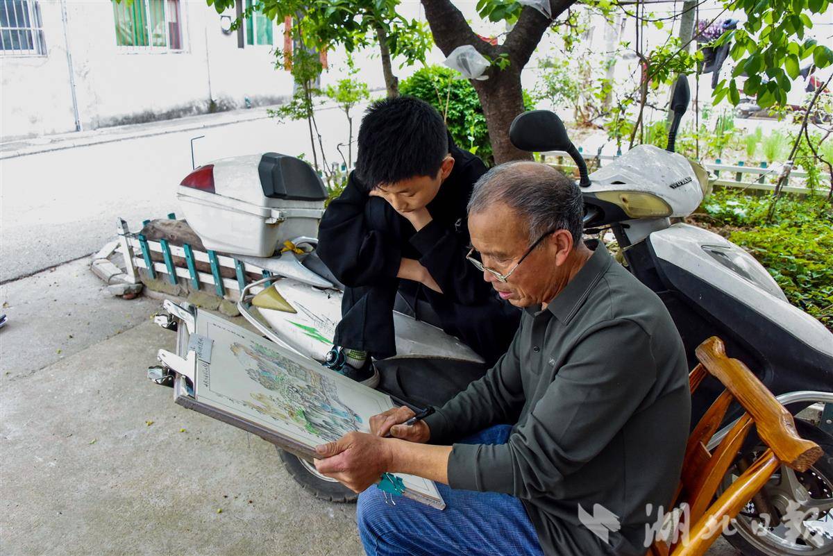 湖北日报讯(通讯员周家山)4月12日,郧阳区柳陂镇卧龙岗社区70岁的村民陈良佩,又坐在门前樱桃树下,画起彩色铅笔画。画画已成为他晚年生活中的最爱,10年来画了100多幅,许多都被左邻右舍和亲朋好友请走,挂在了自家墙上。