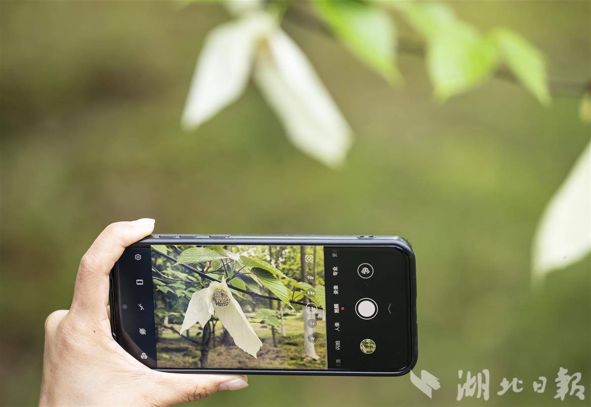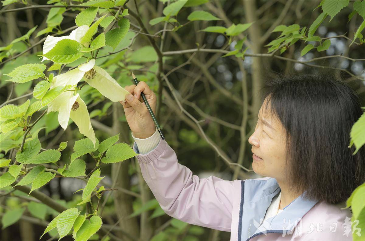 三峡集团国家工程中心长江生物多样性研究中心工作人员在记录珙桐开花情况。