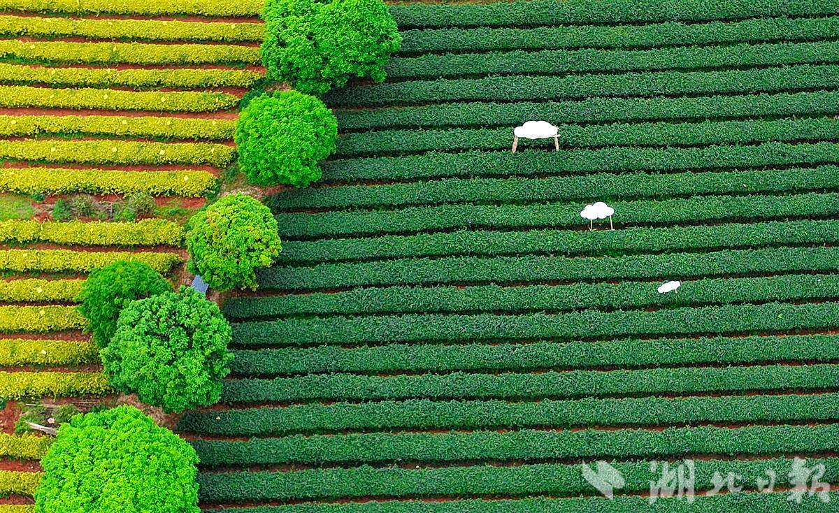 武汉市江夏区青龙山林场郑家山茶场里的黄金茶与普通茶。