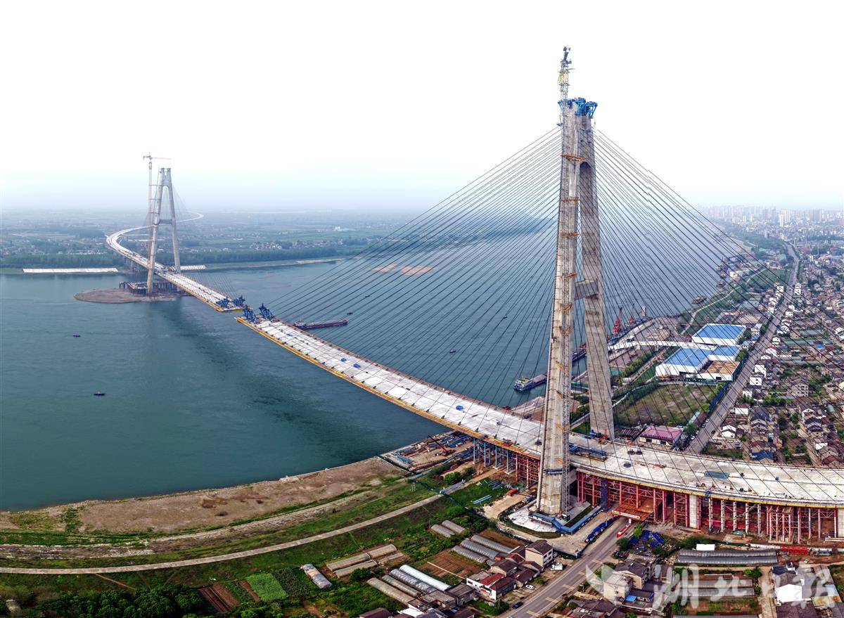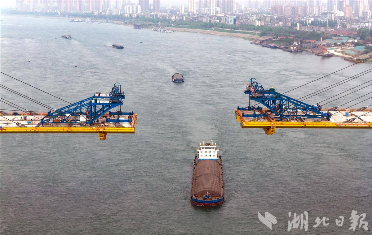 4月13日,枝江长江大桥建设现场弧光闪烁、机声隆隆,火热的施工节奏响彻江面。大桥南北两岸主塔双臂相向延伸,正朝着江心 “握手” 冲刺;俯瞰桥面,一道狭长天光横贯江面,一艘轮船从即将闭合的桥跨缝隙间悠然穿行,构成一幅壮阔的时代建设图景。