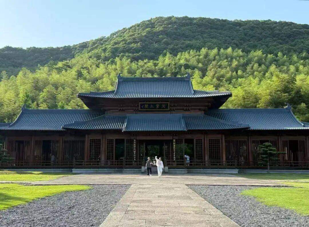 这座始建于北宋、专为珍藏皇室御书而建的古寺,因宋仁宗赐额“天章”而名。它几遭战火损毁,后又复刻重生。青山翠竹间,宋风仿木结构简洁轻盈,飞檐舒展;寺前广场上,石子与草皮自然铺展,视野开阔疏朗。没有雕梁画栋的繁复,没有霓虹闪烁的喧嚣,风过竹影动,光映木檐廊,中式美学的留白意韵尽在其间,让游客在静谧之中细品东方禅意。