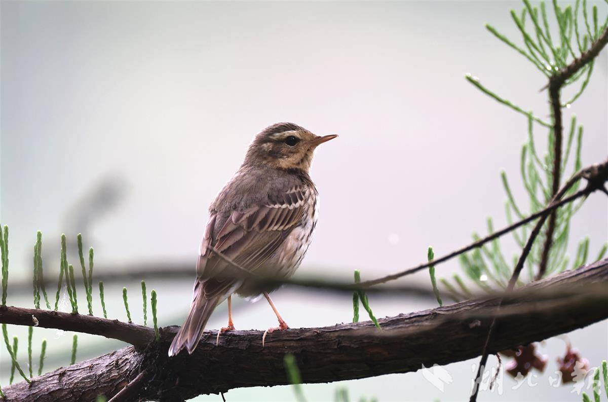 近日,竹山县观鸟爱好者在该县城西湿地公园开展鸟类观测活动时,惊喜拍摄到多只国家“三有”保护动物树鹨,它们蹲守在树枝上,灵动张望的画面十分可爱,成为湿地里一道别样的生态风景线。