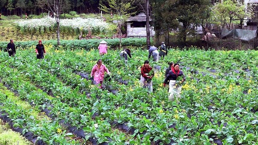 鹤峰县太平镇奇峰关村1组村民周金玉说,“这是摘的第四次了,基本上是三四天就要摘一次。这个菜长得快,不摘就老了。上一次我们18个人,一天就摘了1万多斤呢!”
