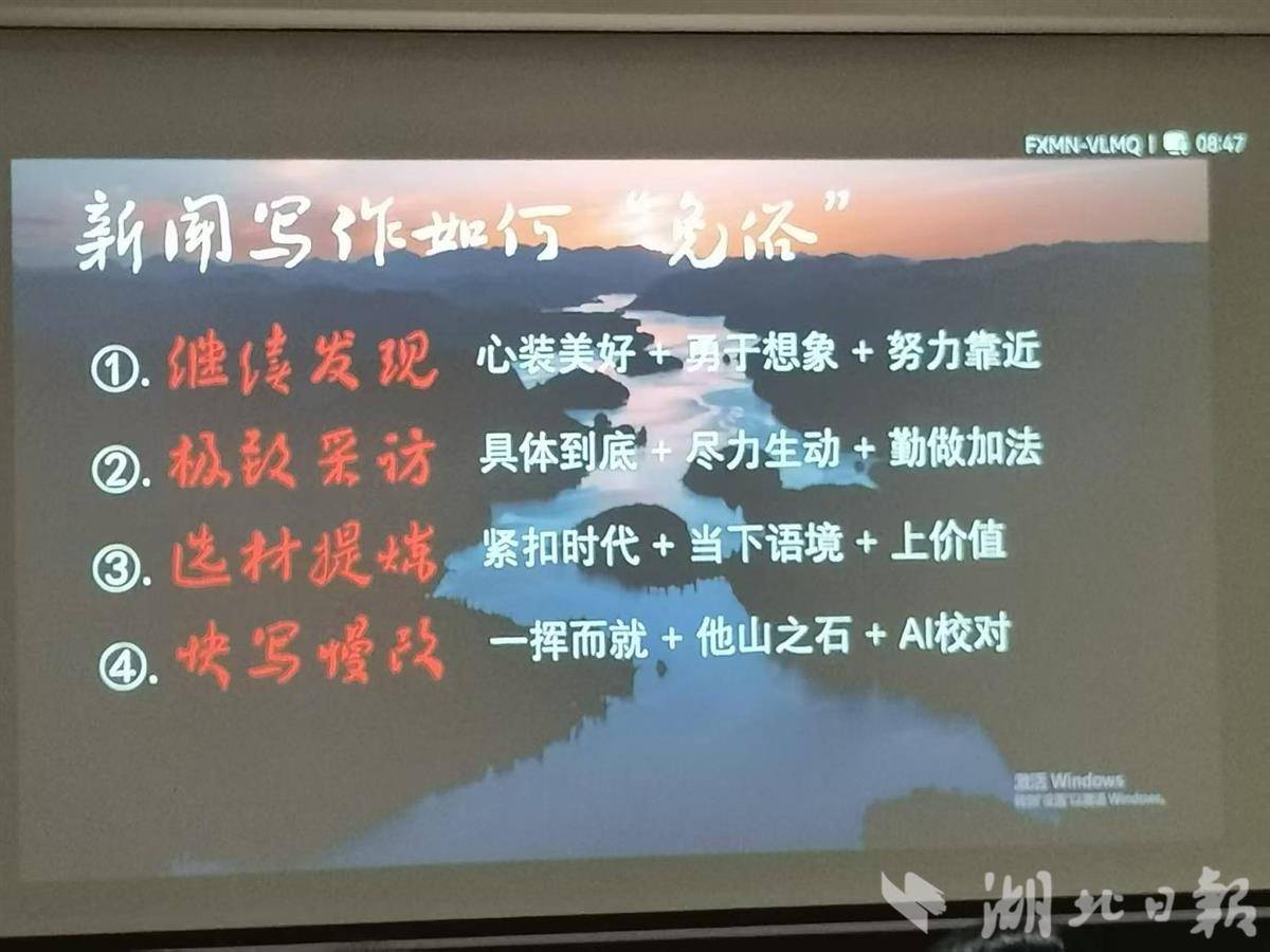 老师总结的“继续发现、极致采访、选材提炼、快写慢改”四个技巧,表述凝练,内涵丰富。好线索不会自动跳到眼前,要带着“新闻眼”在日常工作中深挖。比如一次入户走访、一场屋场院子会,都可能藏着感人的细节。采访不能满足于“问了”,要追问、追访、追现场。多问一句“当时您怎么想的”,往往能听到最打动人的原话。面对获取到的素材,要敢于“割爱”,选取最能体现主题、最具代表性的一两个事例,以小见大。整理成稿时,要先完成再完美,一气呵成写出初稿,然后反复推敲字词、逻辑、标题,做到“文章不厌百回改”。这“四字诀”环环相扣,既解决了“写什么”的困惑,也回答了“怎么写”的难题。