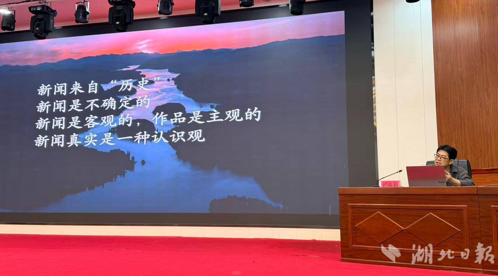 刘振雄老师的《基层新闻如何接地气连天线》开篇以湖北日报头版头条新闻《休学侍父大孝子 返乡创业新乡贤》切入,讲授新闻的写作技巧,这篇新闻讲述的是熊文文孝老爱亲、回乡创业的感人事迹,熊文文是我们大悟芳畈镇人,作为一名本地宣传干部,我采访写过他的新闻故事,但写得平淡无奇,远远达不到一篇“好新闻”的要求,刘老师从行文结构到语言风格,对这篇新闻进行拆解讲述,让我学到了新闻写的是变化,写作如何“免俗”、“天线”和“地气”是什么、有哪些注意事项、怎样取标题,这些对我以后写新闻有切实帮助。