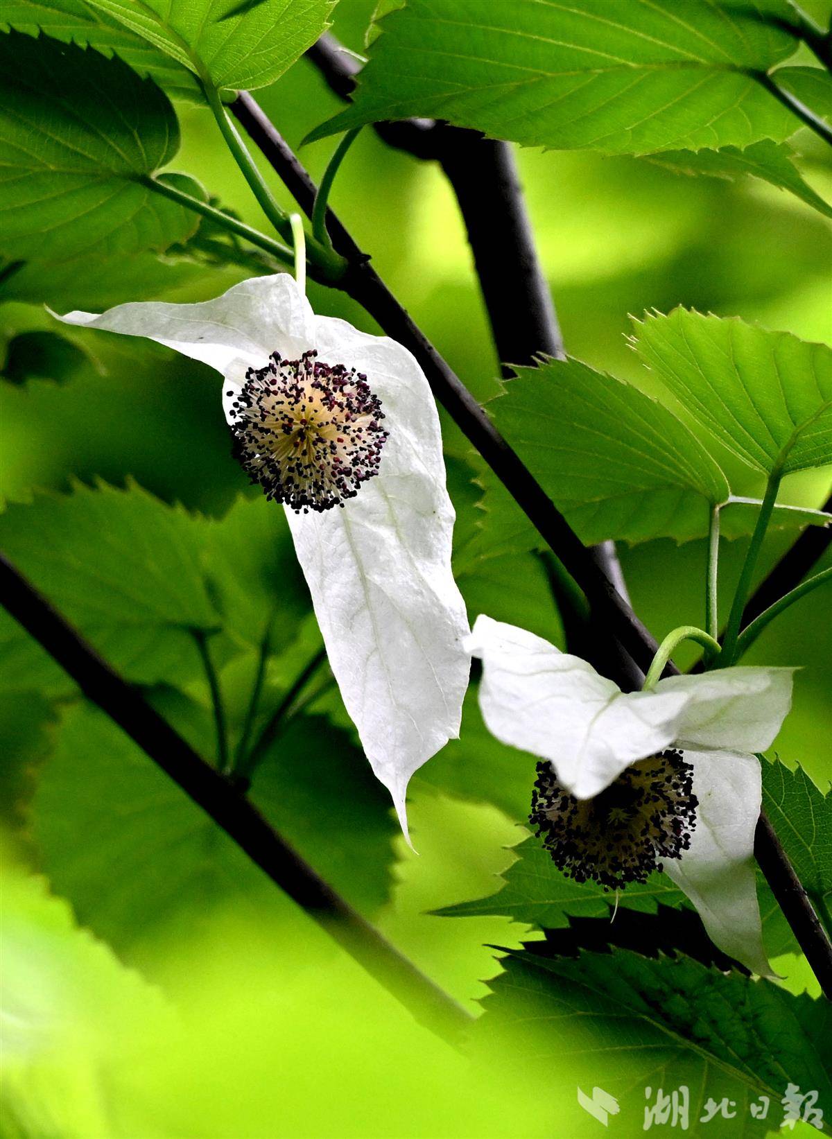 珙桐(又称鸽子花)是典型的高山珍稀植物,作为古老的第三纪孑遗植物,它被誉为“植物活化石”和“植物界大熊猫”,对生长环境要求严苛,自然分布于海拔1500—2200米的深山密林,如今这朵高山之花成功绽放在宜昌城区,实属难得。