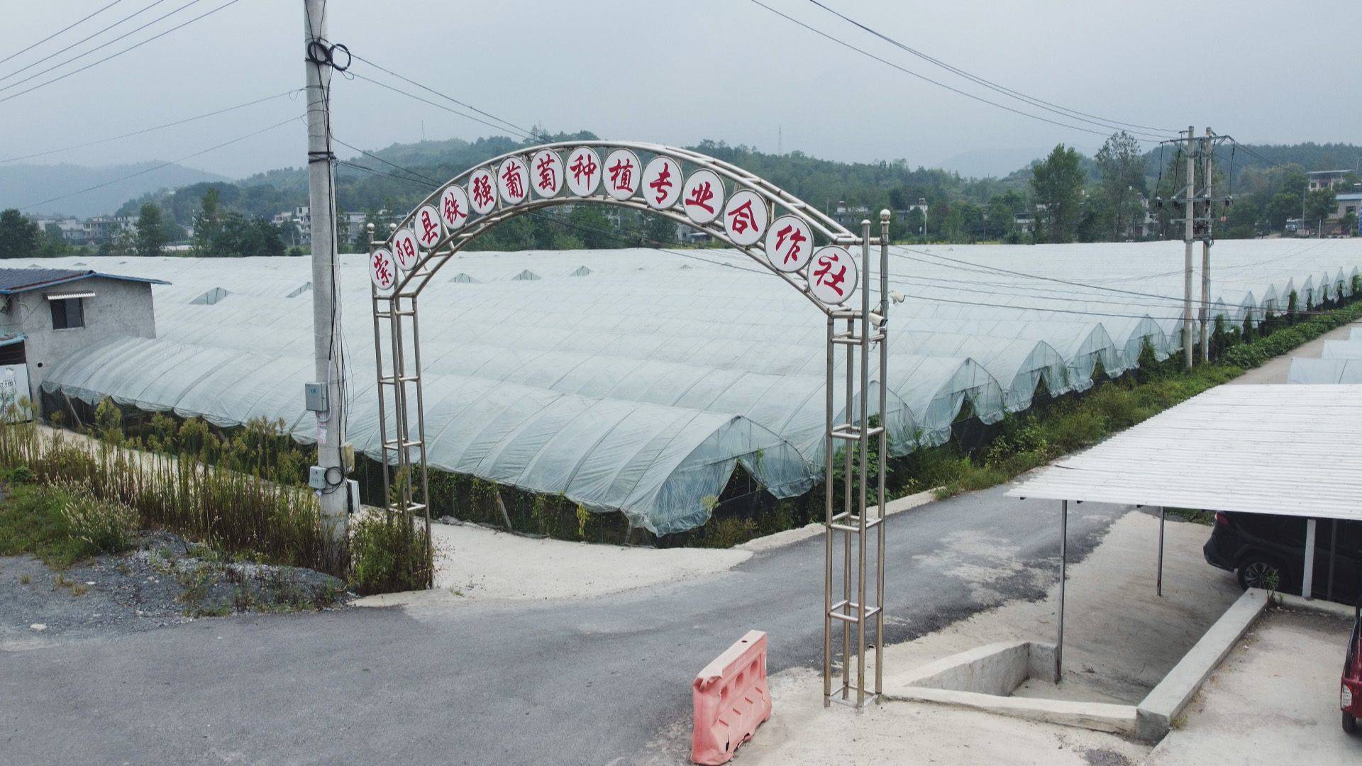 崇阳县白霓镇杨洪村国道旁,顺着“铁强葡萄种植专业合作社”的招牌拐进去,连片的钢架大棚泛着银光。