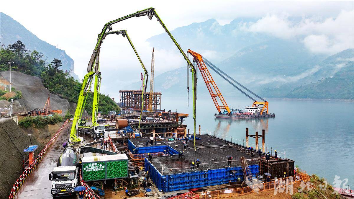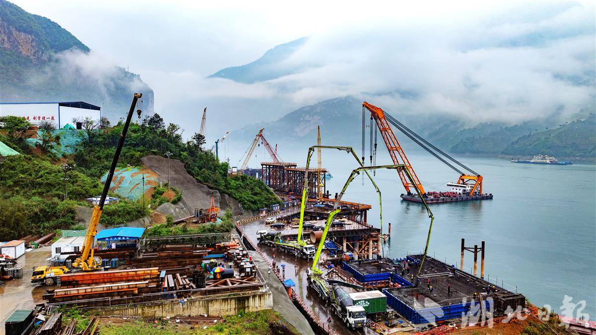 秭归县三峡枢纽江南成品油翻坝项目坝上码头工程施工现场,一派热火朝天的繁忙景象。