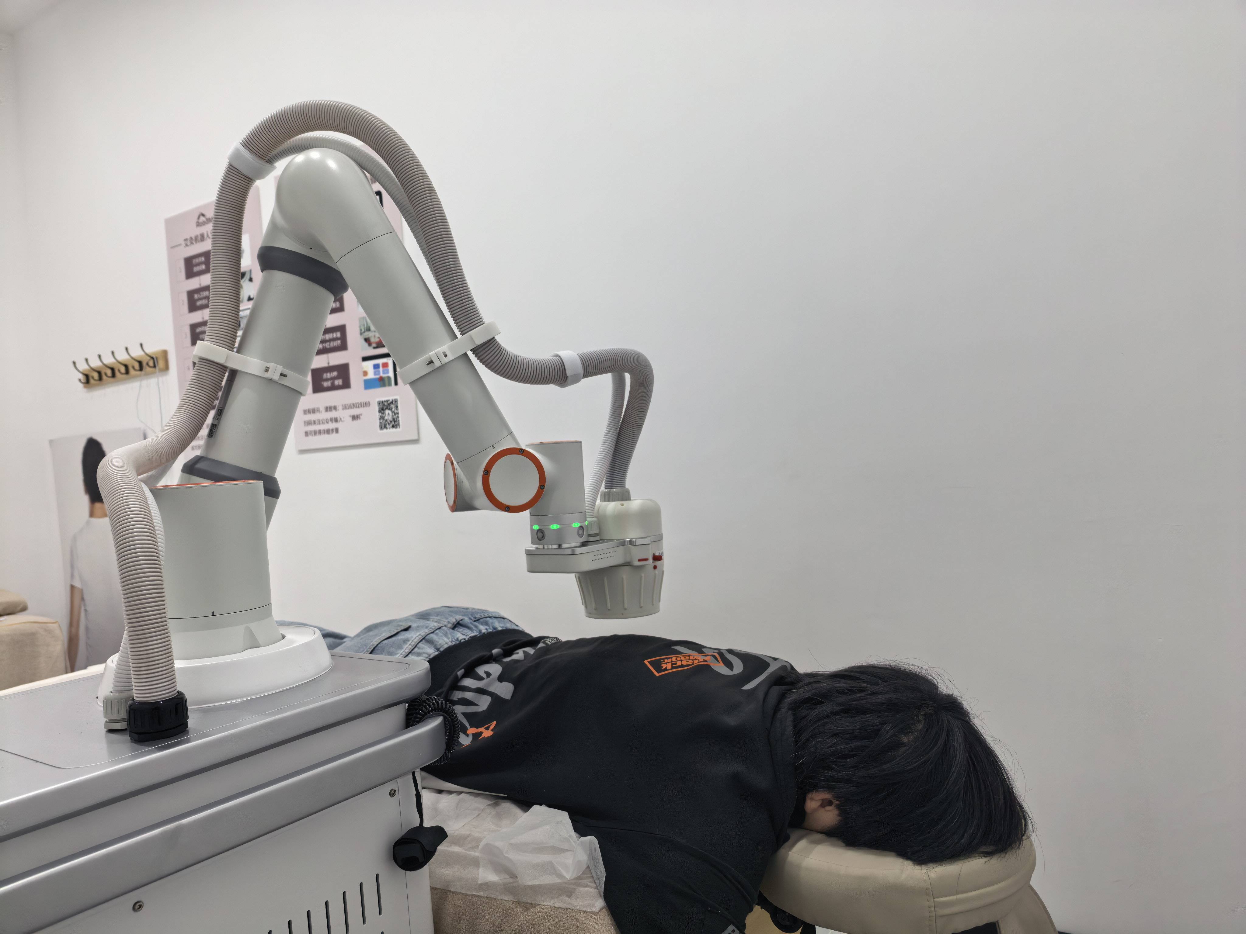 谈到研发的初衷,石子敬说:“我们从2024年开始研发这款产品,初衷是希望它能代替人去完成一些机械性劳动。后来在研究过程中,我们希望它能更专业,不仅要减轻体力劳动,还要减轻脑力劳动,所以加入了穴位自动定位功能,这在市面上其他厂家里很少见。”