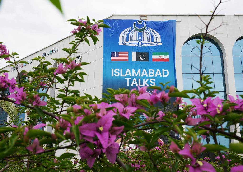 这是4月11日在巴基斯坦伊斯兰堡拍摄的美伊谈判新闻中心外景。新华社发(王申摄)