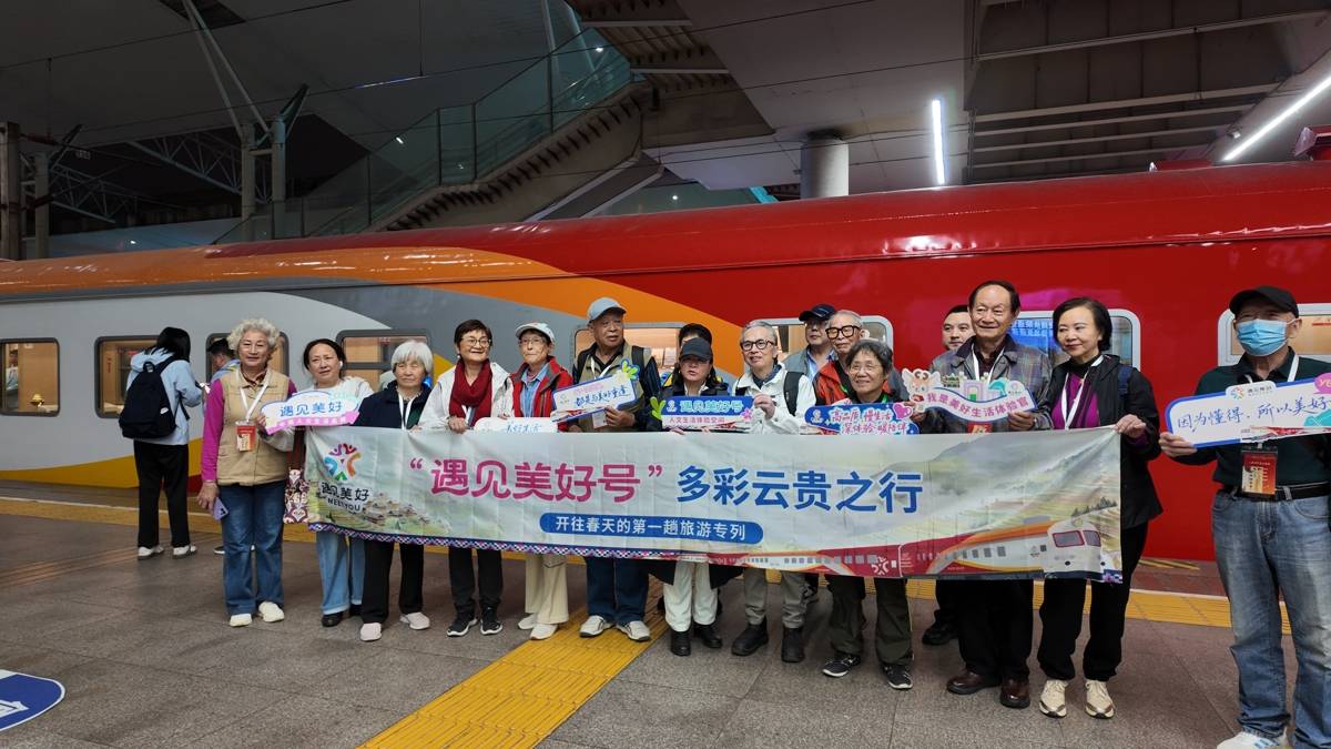 这是铁路武汉局集团有限公司武铁旅服传媒公司今年开出的首趟舒适型旅游专列。车上共有172名旅客,即将开启为期12天的云贵之旅。
