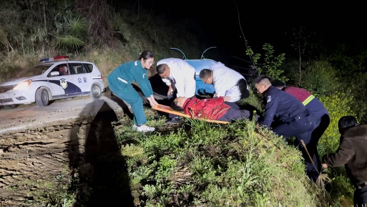 4月14日21时许,十堰市竹山县楼台派出所民警刚圆满处置完一起警情,在返程途中遇到群众求助,得知一名老人不慎失足坠入路边陡坎,被困底部动弹不得、伤情难辨,执勤民警不敢有半分迟疑,以最快速度奔赴现场。