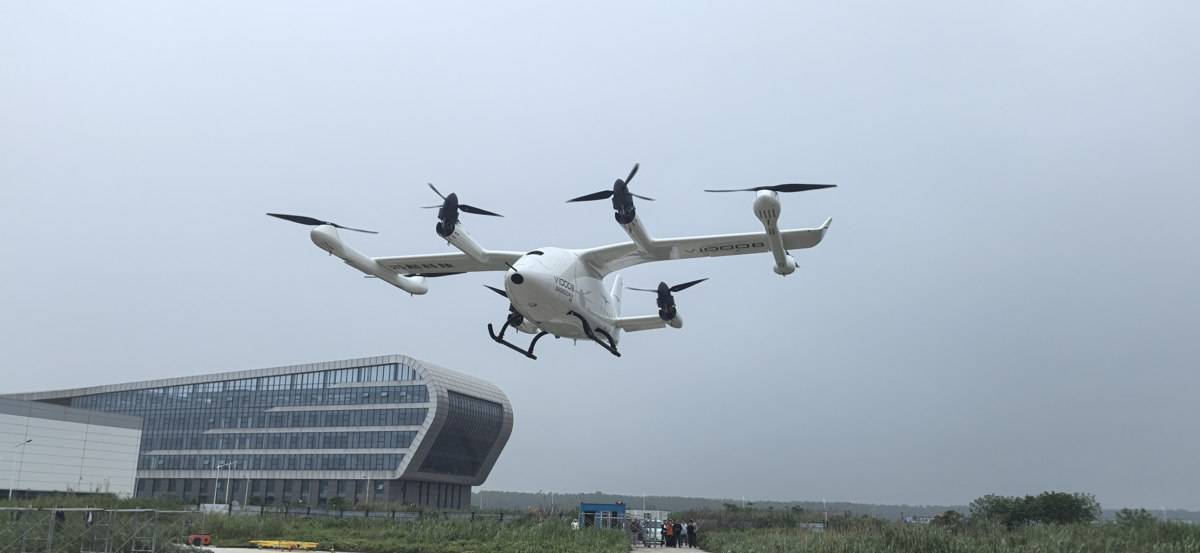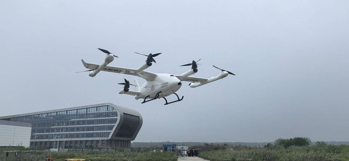 伴随着8个螺旋桨的飞速旋转,一架体型巨大的白色eVTOL(电动垂直起降飞行器)缓缓升空。悬停、平飞,姿态平稳,10多分钟后,该飞行器稳稳降落。