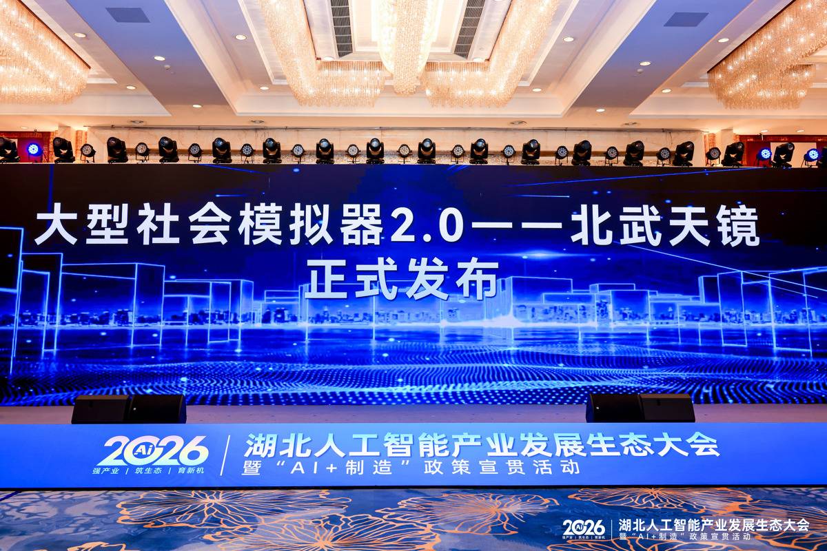 湖北日报讯(记者刘宇、张灿)如果把一座城市装进计算机,让它先替我们“试错”会怎样?4月16日,在2026湖北人工智能产业发展生态大会暨“AI+制造”政策宣贯活动上,北京大学武汉人工智能研究院研发的大型社会模拟器2.0——北武天镜重磅发布。