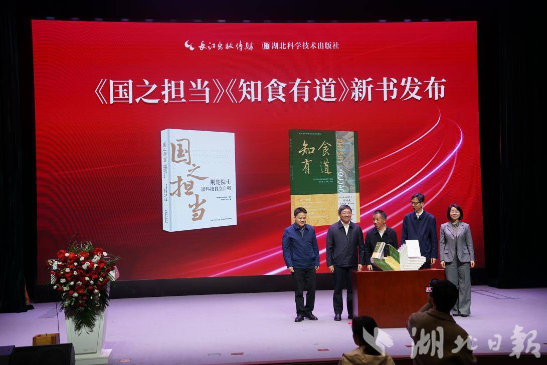 活动现场,新书《国之担当:荆楚院士谈科技自立自强》《知食有道》发布。两部作品均由湖北科学技术出版社策划出版,是该社深耕院士资源科普、民生科普两大核心产品线的代表性成果。作者代表与读者分享了创作缘由和书中故事。