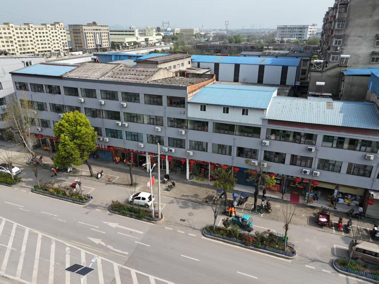 截至2026年3月底,项目团队对杜山镇三条主干道沿线17栋建筑进行统一改造:铲除破损瓷砖,重新粉刷灰色涂料;更换老旧门窗;加装统一规格的空调罩和特色镂空装饰;规范广告牌。