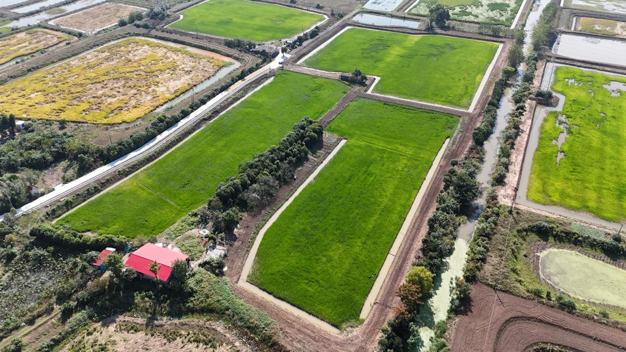 地块多按20—30亩划分,既契合农户经营习惯,也满足机械化作业要求。团队充分利用塘底淤泥,将富含有机质的底泥与泥土混合,从而确保土壤肥力达标,同时完善道路、水渠、输配电等农业基础设施。
